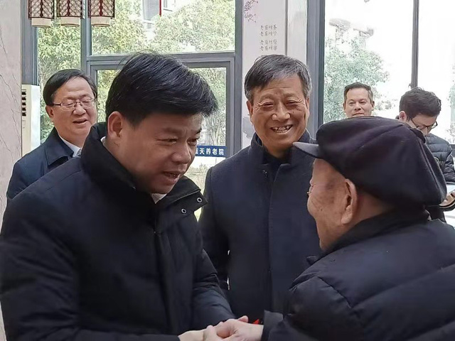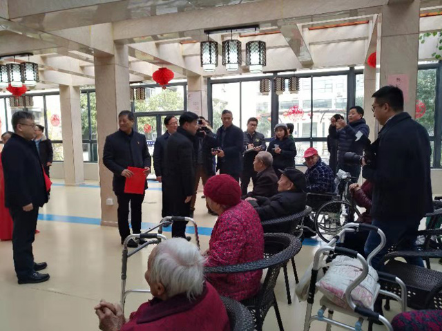 值此新春佳节到来之际,于2020年1月19日下午,无锡市惠山区区委书记李秋峰、惠山区纪委书记吴建明、惠山区民政局局长毛德祥等区委领导来长安蓝天养老院走访慰问养老院的老人,代表区委、区政府向老人们表示亲切的问候,并带送来了慰问金。