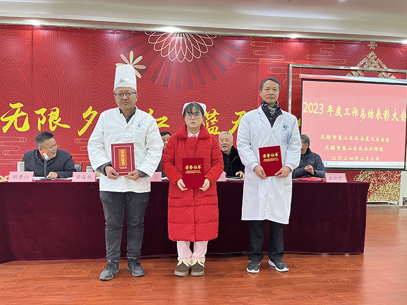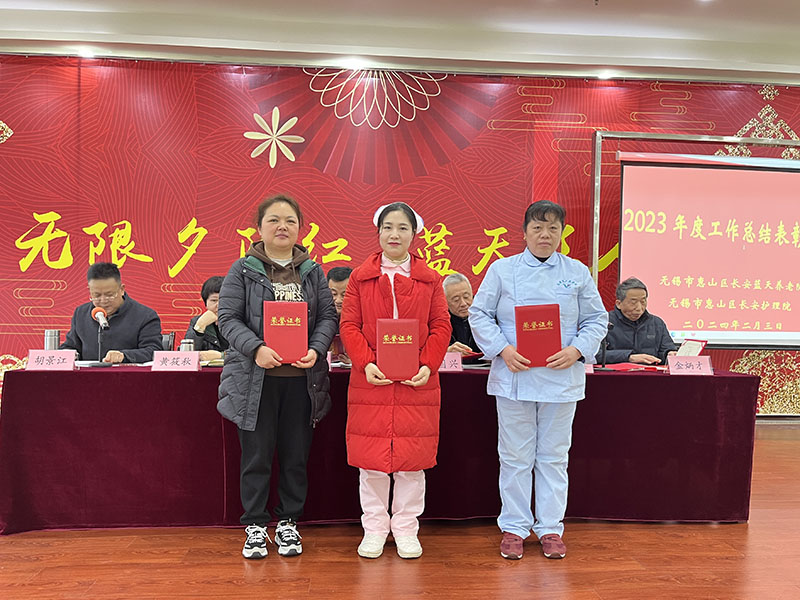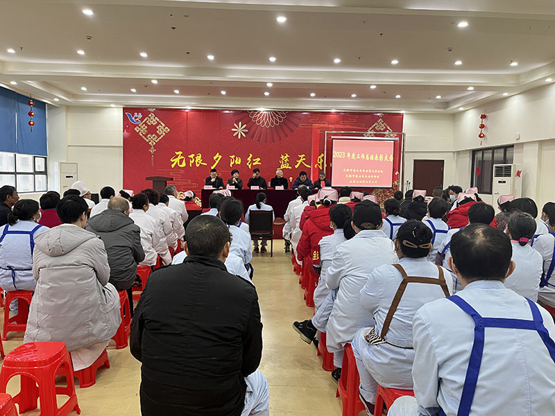 2023年2月3日中午12点15分,长安蓝天养老院在四楼活动室举行了“2023年度工作总结及表彰大会”,参会的领导有:长安蓝天董事长陆国兴,院长万常旗,副院长张鲁滨、金炳才、黄筱秋、胡景江。