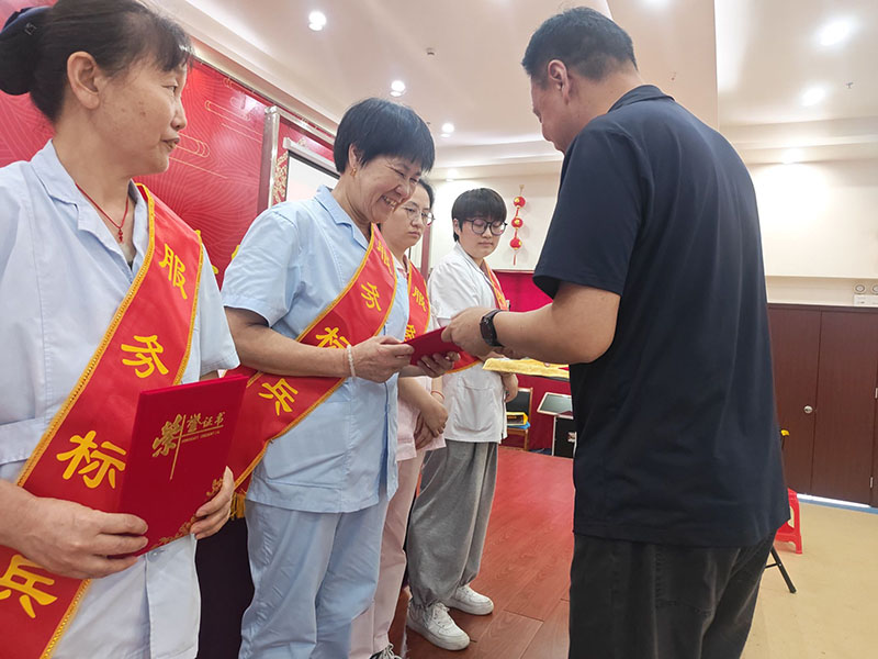 张鲁滨副院长给服务标兵颁发证书和奖金。