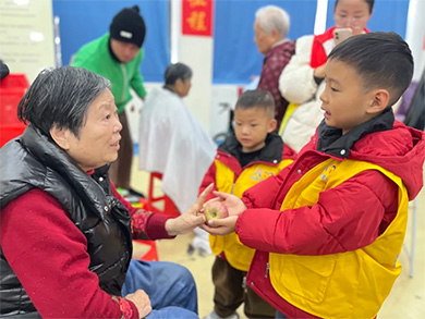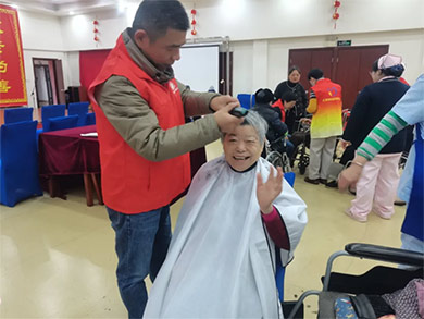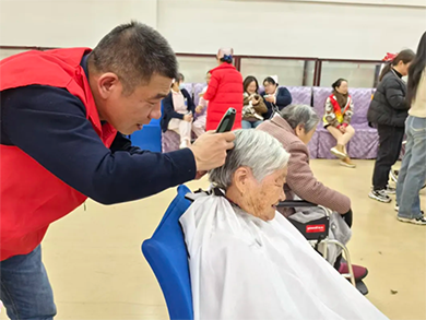 暖意融融活动现场暖意融融,处处皆是动人的画面。志愿者们围在老人身旁,手把手教着包馄饨,翠绿的葱花、鲜美的肉馅,在一双双手中翻飞成圆润饱满的模样。氤氲的热气袅袅升起,裹挟着食物的香气与浓浓的爱意,飘满了整个房间。有的志愿者化身“Tony老师”,细心地为老人修剪头发,剪刀起落间,剪出的是清爽利落,更是贴心关怀;有的蹲下身,握着老人布满皱纹的手,小心翼翼地修剪指甲;还有的坐在老人身边,轻声细语地唠着家常,倾听那些尘封在岁月里的故事,温柔的陪伴,胜过千言万语。