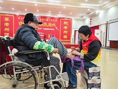 晨光熹微里,志愿者们的身影便点亮了敬老院的宁静。身着红马甲的他们,手捧“积小善存大爱”“冬至大如年 人间小团圆”的暖心手牌,笑意盈盈地踏入院门。这一刻,冬日的寒意被瞬间驱散,温暖的气息在院落里悄然弥漫。